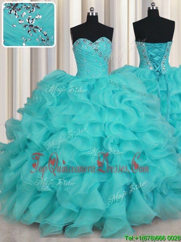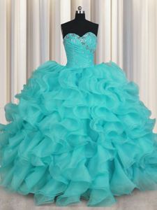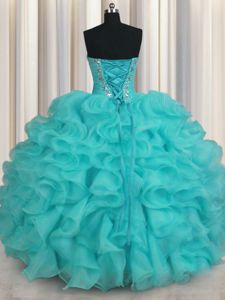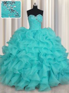 Sweetheart Sleeveless Lace Up Sweet 16 Quinceanera Dress Aqua Blue Organza