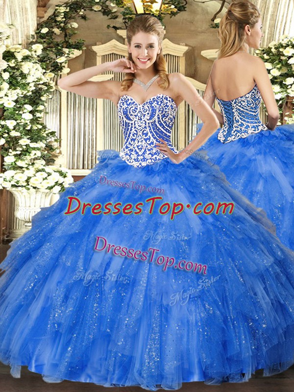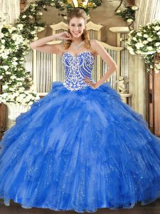 Sweetheart Sleeveless Lace Up Sweet 16 Quinceanera Dress Blue Tulle