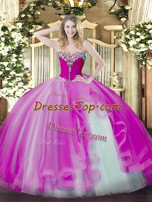 Sweetheart Sleeveless Lace Up Sweet 16 Quinceanera Dress Fuchsia Tulle