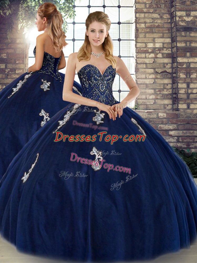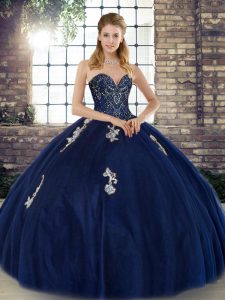 Sweetheart Sleeveless Lace Up Sweet 16 Quinceanera Dress Navy Blue Tulle