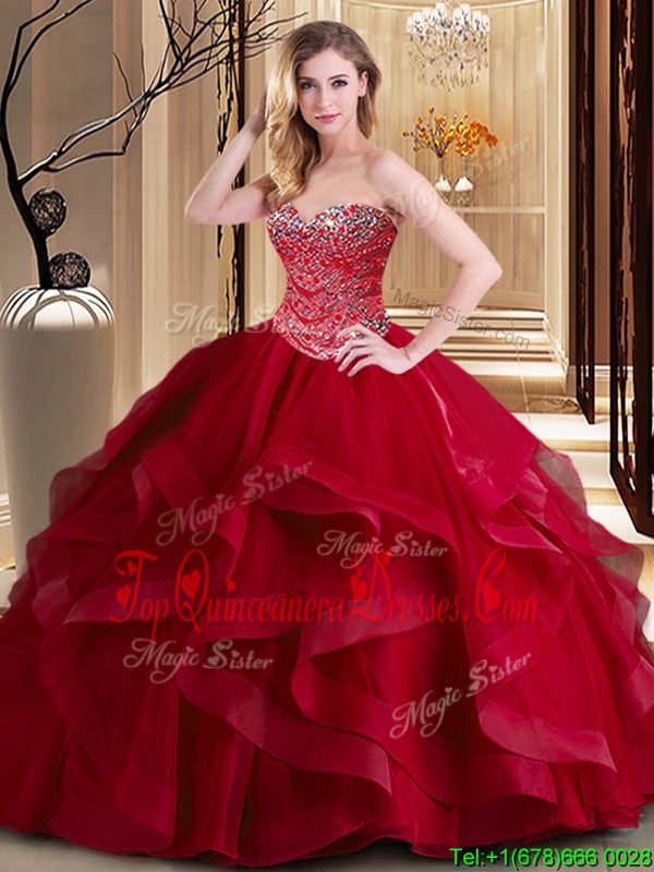 Sweetheart Sleeveless Lace Up Sweet 16 Quinceanera Dress Wine Red Tulle