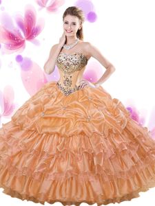 Sweetheart Sleeveless Organza 15 Quinceanera Dress Beading and Ruffled Layers and Pick Ups Lace Up