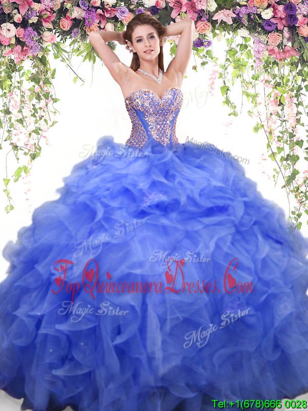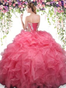 Sweetheart Sleeveless Organza 15 Quinceanera Dress Beading and Ruffles Lace Up