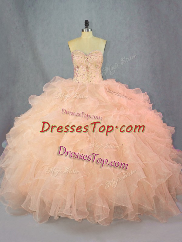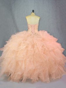 Sweetheart Sleeveless Organza 15th Birthday Dress Beading and Ruffles Lace Up
