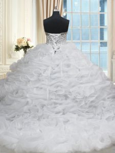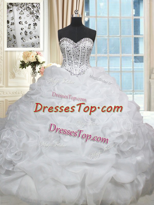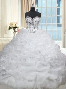 Sweetheart Sleeveless Organza Ball Gown Prom Dress Beading and Pick Ups Brush Train Lace Up