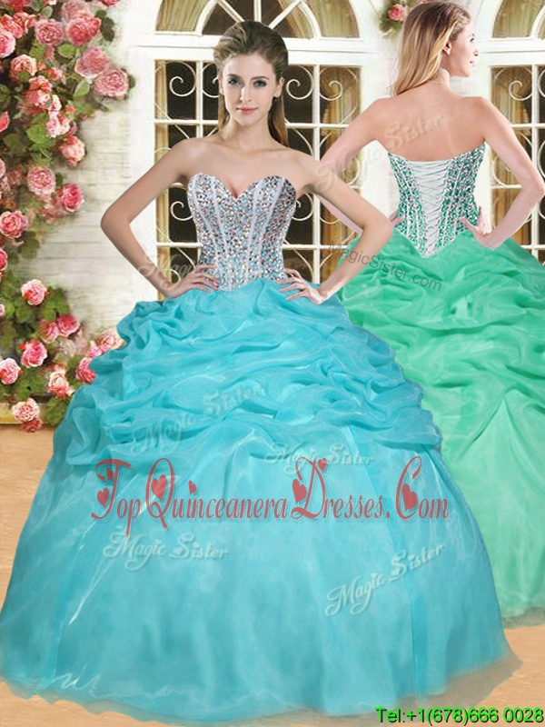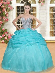 Sweetheart Sleeveless Organza Ball Gown Prom Dress Beading and Pick Ups Lace Up