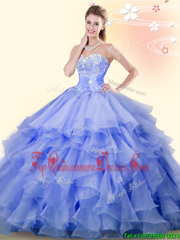 Sweetheart Sleeveless Organza Quince Ball Gowns Beading and Ruffles Lace Up