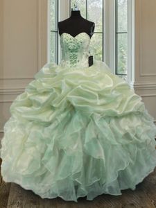 Sweetheart Sleeveless Organza Quinceanera Gown Beading and Ruffles Lace Up
