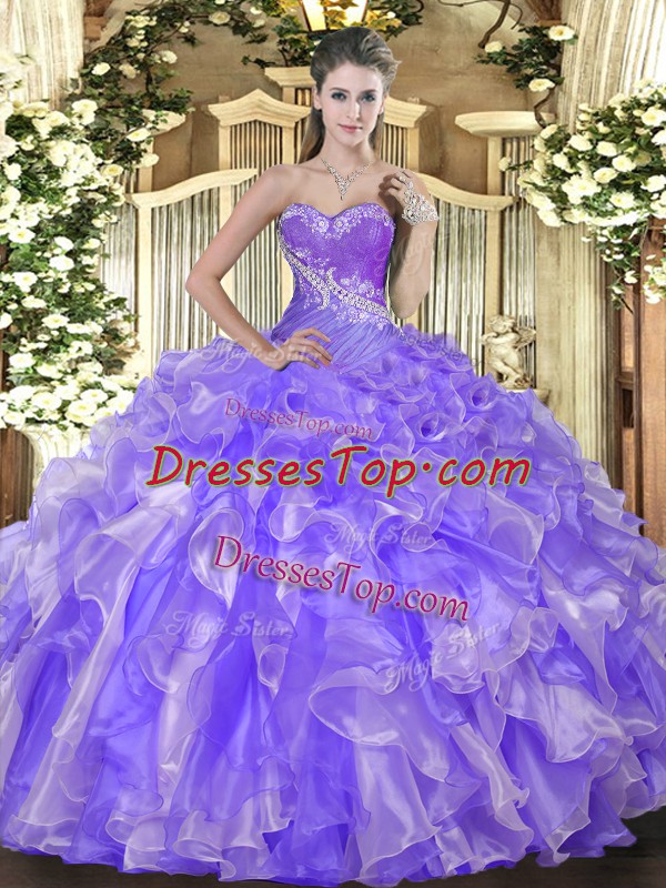 Sweetheart Sleeveless Organza Vestidos de Quinceanera Beading and Ruffles Lace Up