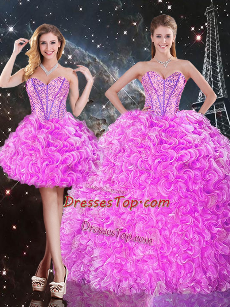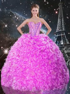 Sweetheart Sleeveless Quinceanera Dress Floor Length Beading and Ruffles Fuchsia Organza
