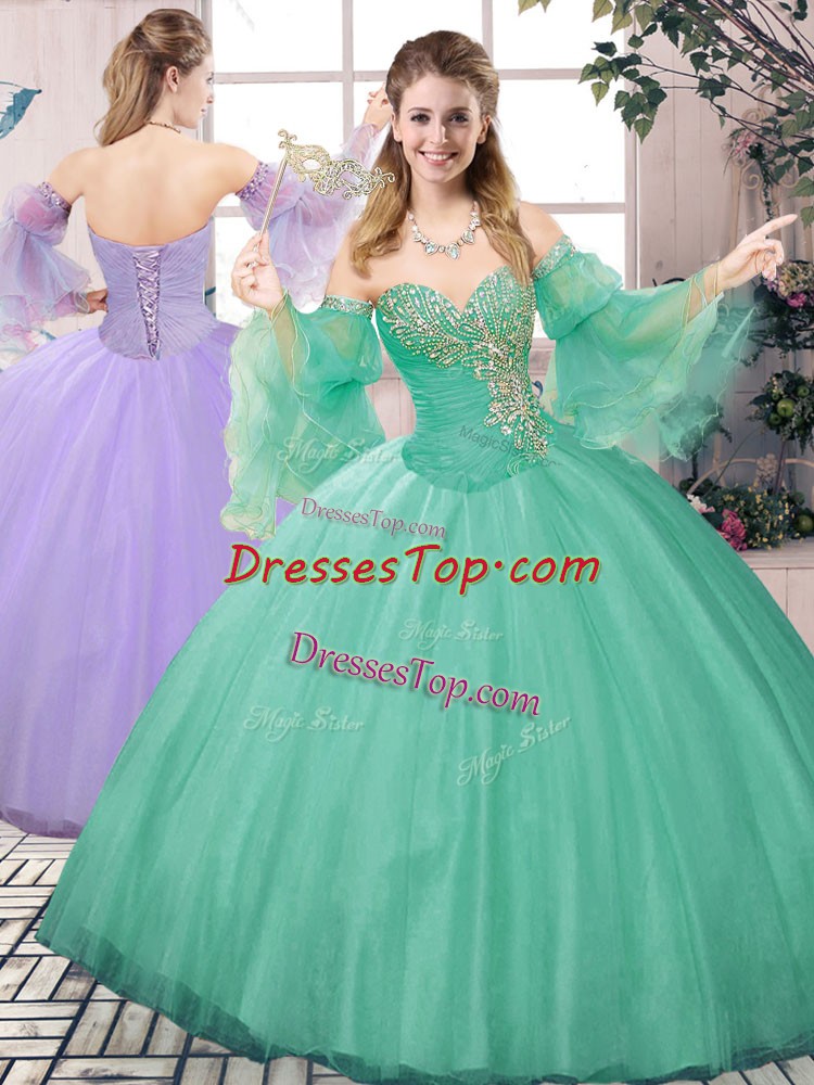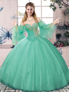 Sweetheart Sleeveless Quinceanera Gown Floor Length Beading Apple Green Tulle