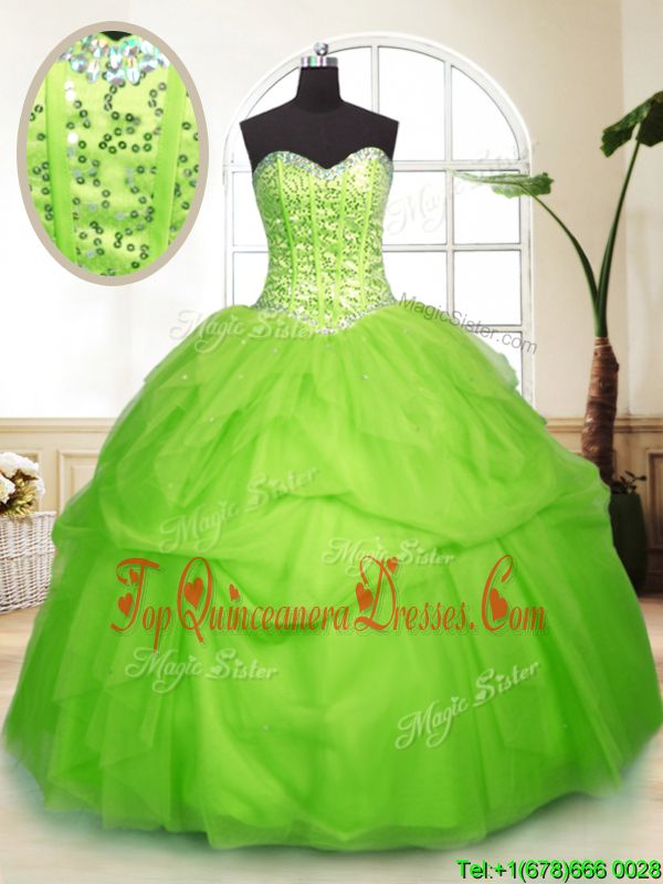 Sweetheart Sleeveless Quinceanera Gown Floor Length Sequins and Pick Ups Tulle