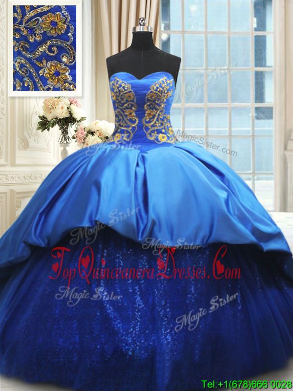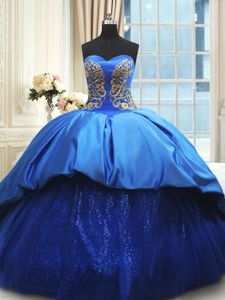 Sweetheart Sleeveless Satin Sweet 16 Quinceanera Dress Beading and Embroidery Court Train Lace Up