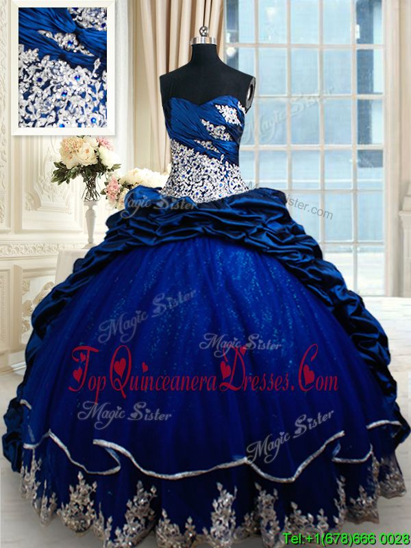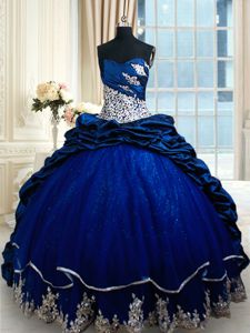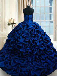 Sweetheart Sleeveless Sweet 16 Dress Court Train Appliques and Pick Ups Royal Blue Taffeta