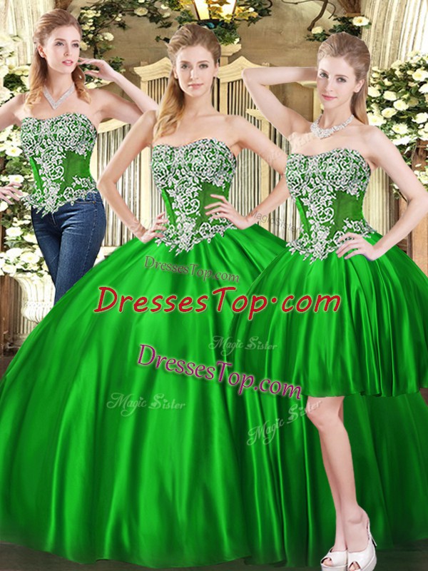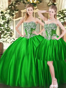 Sweetheart Sleeveless Sweet 16 Dress Floor Length Beading Green Tulle