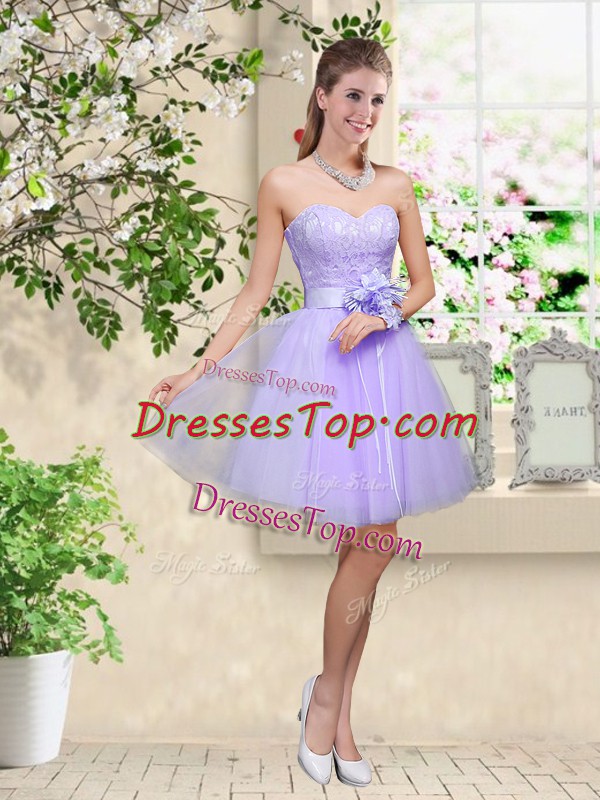 Sweetheart Sleeveless Tulle Dama Dress Lace and Belt Lace Up