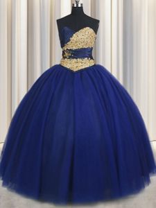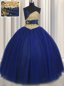 Sweetheart Sleeveless Tulle Sweet 16 Quinceanera Dress Beading and Appliques Lace Up