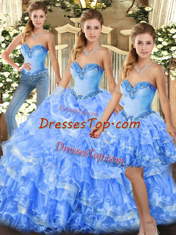 Sweetheart Sleeveless Vestidos de Quinceanera Floor Length Beading and Ruffles Light Blue Organza