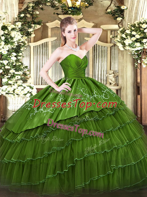 Sweetheart Sleeveless Zipper 15 Quinceanera Dress Green Organza and Taffeta
