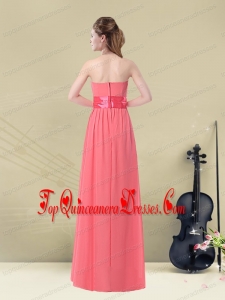Sweetheart Watermelon Long Dama Dress with Bow Belt