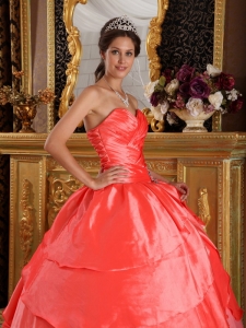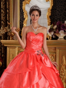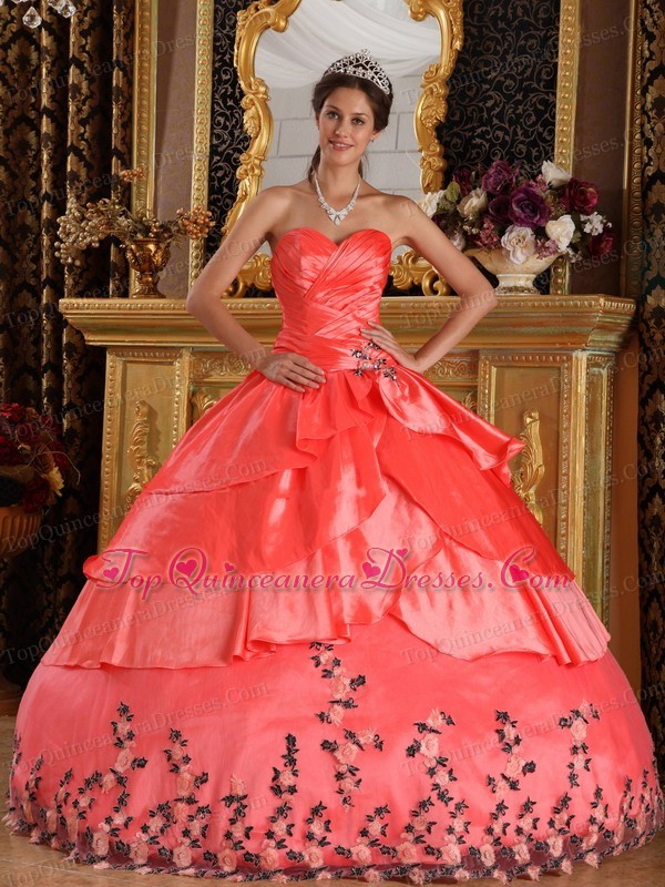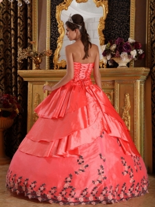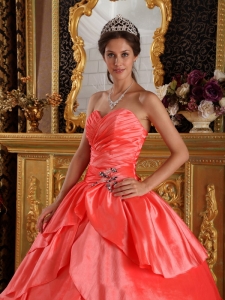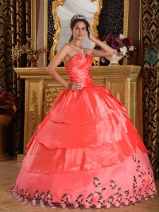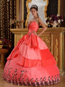 Sweetheart Watermelon Red Appliques Quinceanera Dress