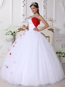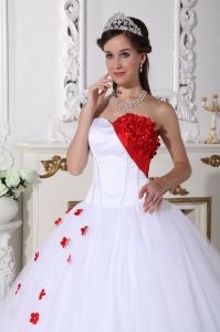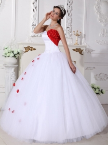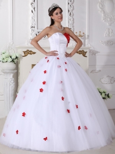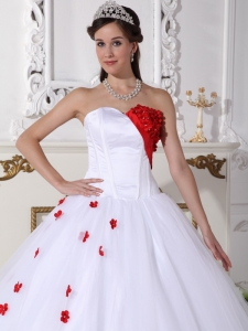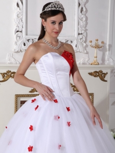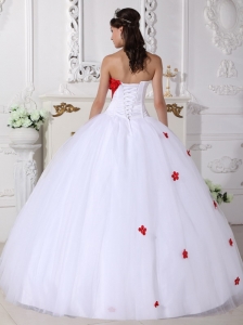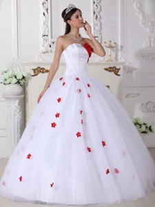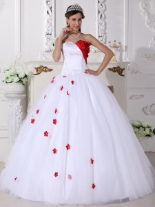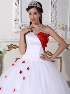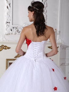 Sweetheart White and Red Quinceanera Dress Appliques Ball Gown