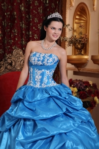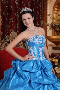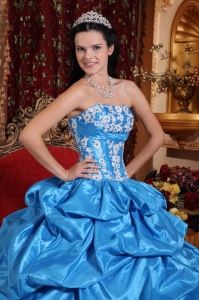 Taffeta Appliques Sweet 16th Dresses Strapless Baby Blue