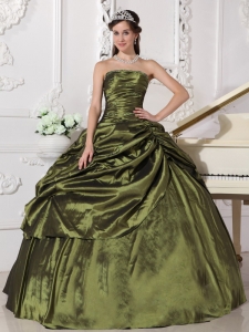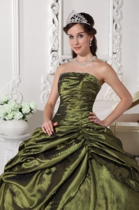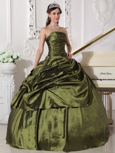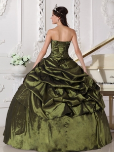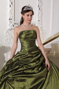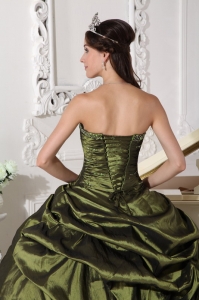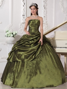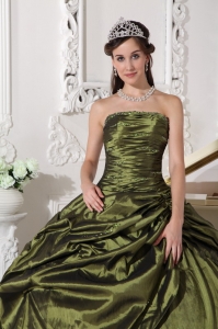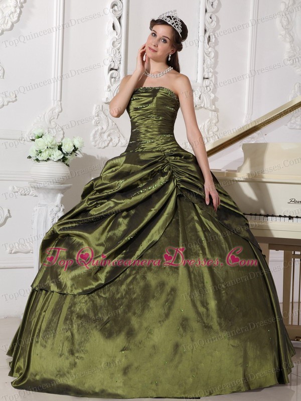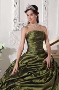 Taffeta Beading Olive Green 16th Birthday Dress Strapless