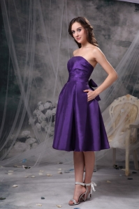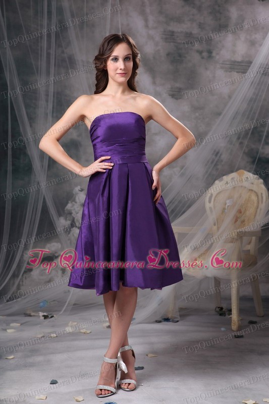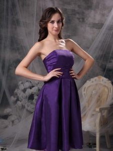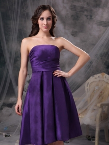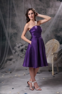 Taffeta Dama Dress Purple Empire Ruch Strapless Knee-length