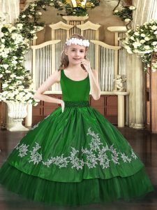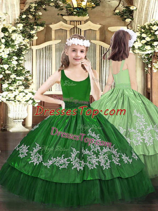 Taffeta Sleeveless Floor Length Little Girls Pageant Dress and Beading and Appliques
