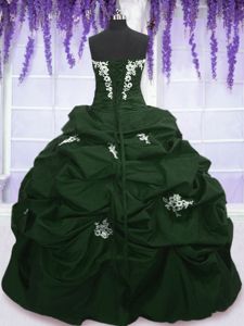 Taffeta Strapless Sleeveless Lace Up Appliques and Pick Ups Sweet 16 Quinceanera Dress in Dark Green and Peacock Green