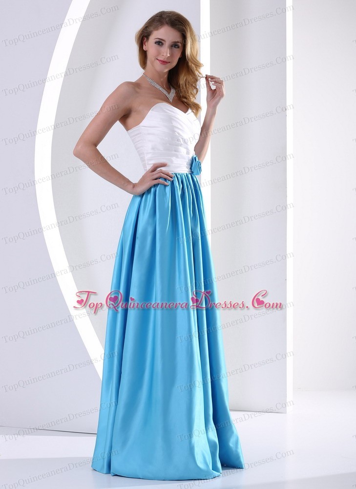 Taffeta Sweetheart Quinceanera Dama Dress White Aqua Blue