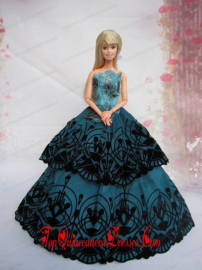 Teal A-line Dress Noble Barbie With Appliques and Floor-length
