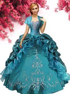 Teal Quince Ball Gowns Military Ball and Sweet 16 and Quinceanera and For with Beading and Embroidery and Pick Ups Sweetheart Sleeveless Lace Up