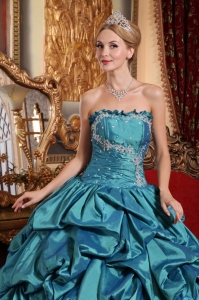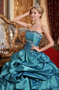 Teal Quinceanera Dress Strapless Appliques Pick-ups