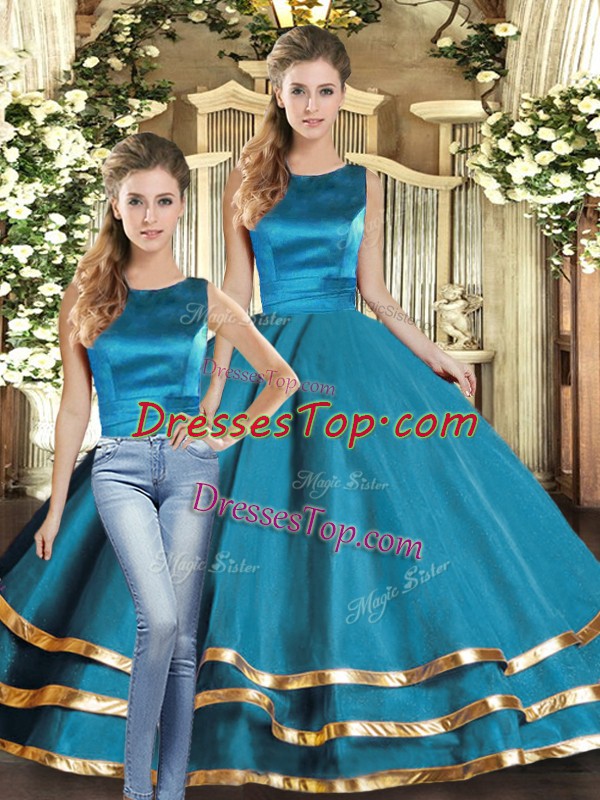 Teal Scoop Neckline Ruffled Layers Quinceanera Dresses Sleeveless Lace Up