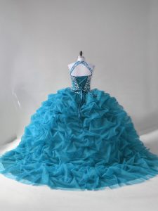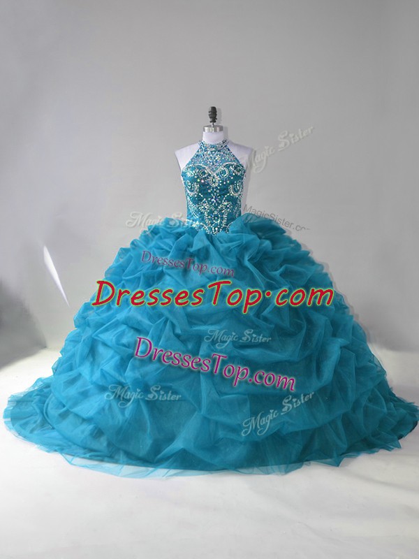 Teal Sleeveless Beading and Pick Ups Quinceanera Gown