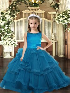 Teal Sleeveless Ruffled Layers Floor Length Kids Pageant Dress