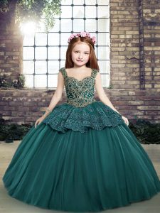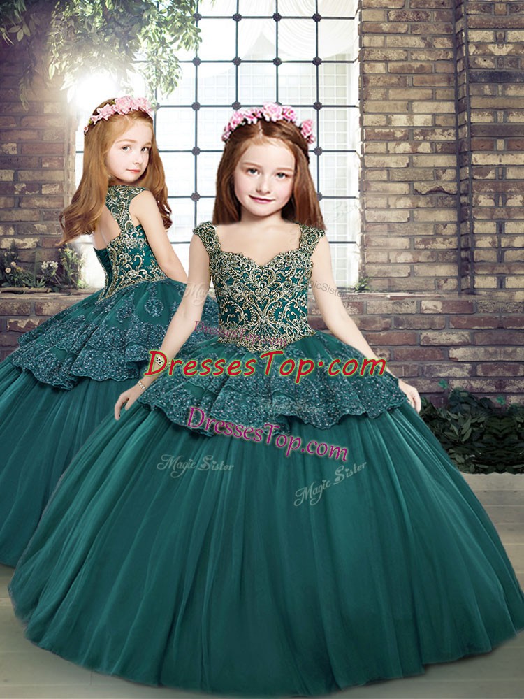 Teal Straps Side Zipper Beading and Appliques Little Girl Pageant Dress Sleeveless