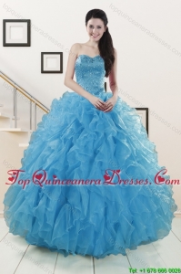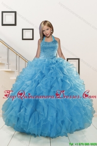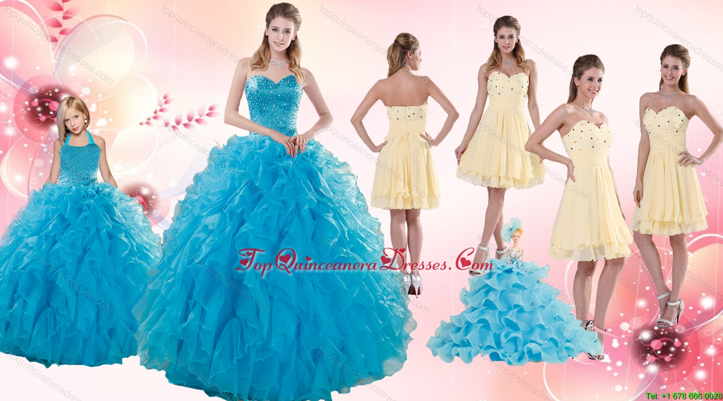 Teal Sweetheart Ruffles Quinceanera Gown and Sweetheart Short Dama Dresses and Teal Halter Top Flower Girl Dress