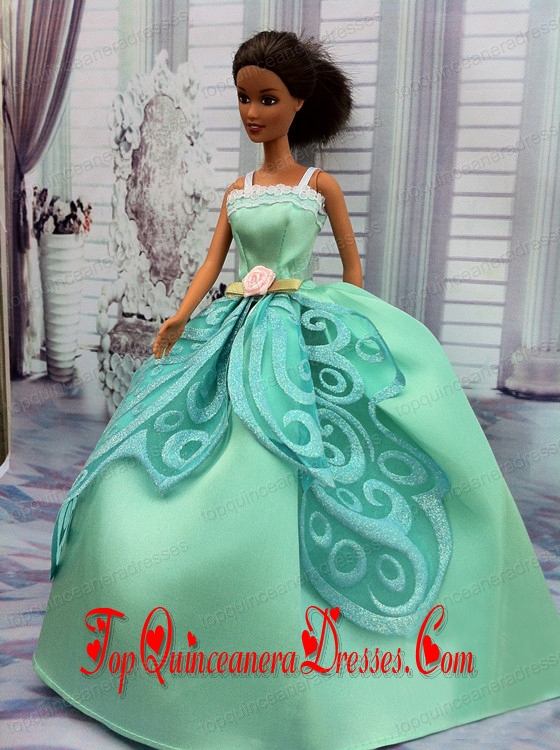 The Most Amazing Apple Green Appliques Dress With Hand Made Flower Made to Fit The Barbie Doll