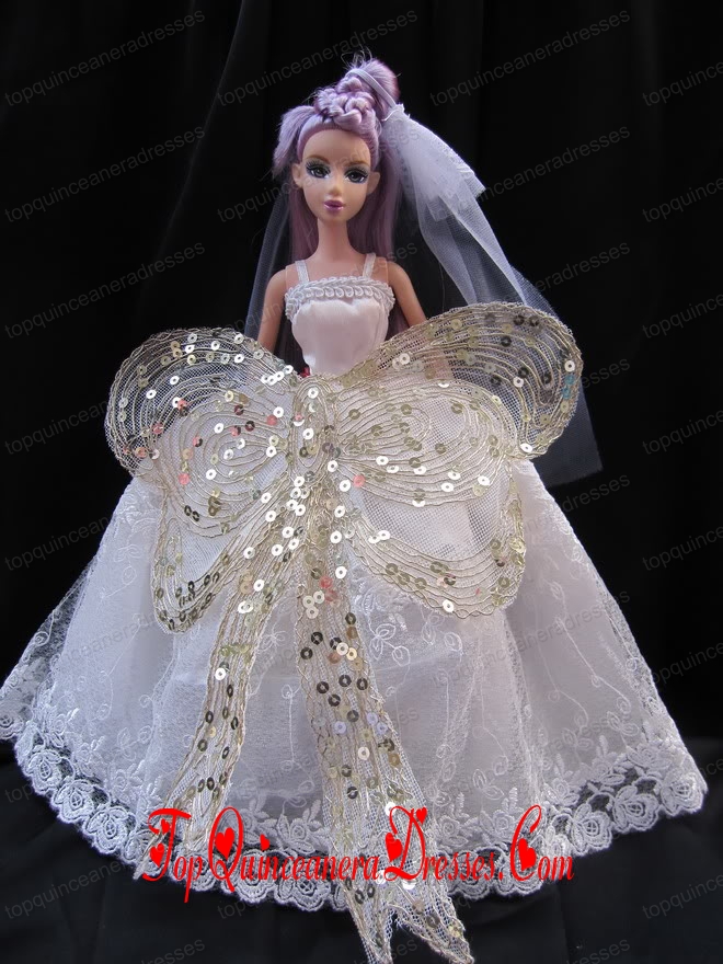 The Most Amazing Straps White Dress with Sequins Made To Fit The Barbie Doll
