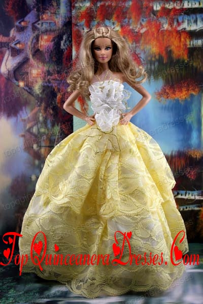 The Most Amazing Yellow Dress With Hand Made Flowers To Fit The Barbie Doll