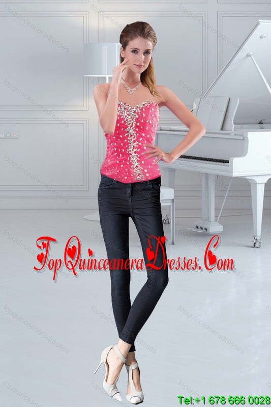 The Most Popular Sweetheart 2015 Hot Pink Corset with Beading