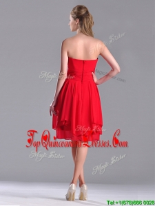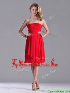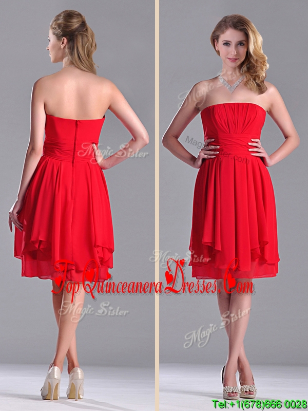 The Super Hot Strapless Empire Chiffon Ruched Dama Dress in Red