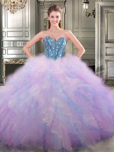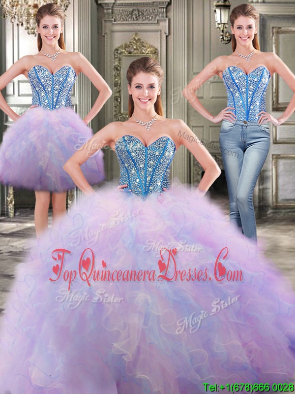 Three Piece Floor Length Ball Gowns Sleeveless Multi-color Ball Gown Prom Dress Lace Up