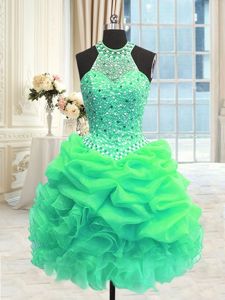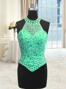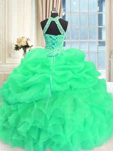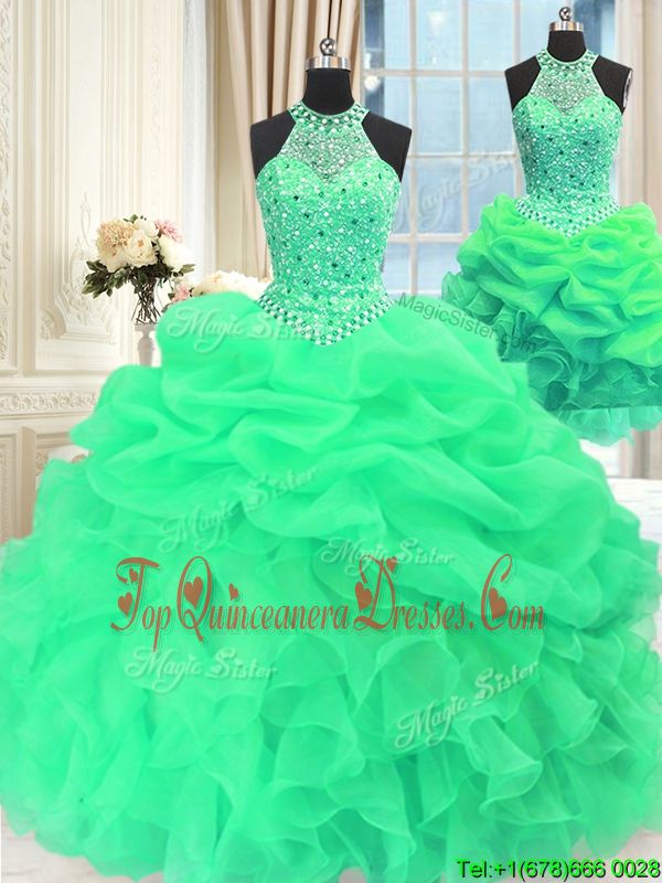 Three Piece Green High-neck Lace Up Beading and Pick Ups 15 Quinceanera Dress Sleeveless