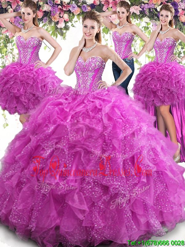 Three Piece Scoop Sleeveless Floor Length Beading and Ruffles Lace Up Vestidos de Quinceanera with Turquoise