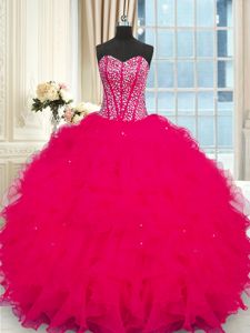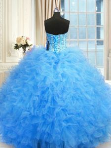 Three Piece Sleeveless Beading and Ruffles Lace Up 15th Birthday Dress