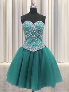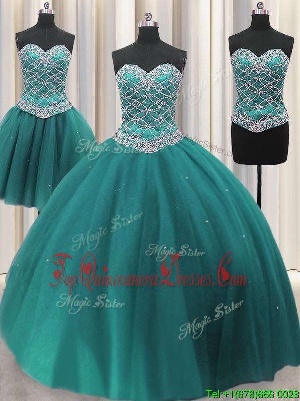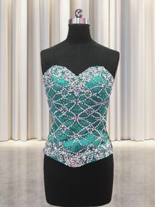 Three Piece Teal Sweetheart Neckline Beading and Sequins Quinceanera Gown Sleeveless Lace Up